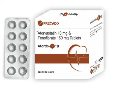 Atoder F 10mg/160mg Tablet contains two active ingredients: Atorvastatin and Fenofibrate. Atorvastatin is a statin that lowers LDL cholesterol and total cholesterol by inhibiting the HMG-CoA reductase enzyme in the liver. Fenofibrate is a fibrate that reduces triglyceride levels and increases HDL cholesterol by activating peroxisome proliferator-activated receptors (PPARs).
